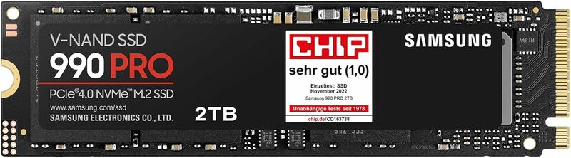 Samsung 990 PRO NVMe M.2 SSD, 2 TB, PCIe 4.0, 7.450 MB/s Lesen, 6.900 MB/s Schreiben, Interne SSD, Interne SSD für Gaming und Videobearbeitung, Schwarz