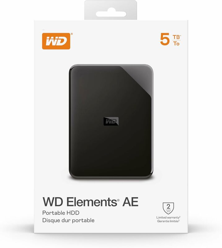 WD 5 TB Elements AE Tragbare Externe Festplatte, SuperSpeed USB 3.2 Gen 1/USB 3.0, Plug-and-Play-Erweiterung, Formatiert für Windows, Schwarz